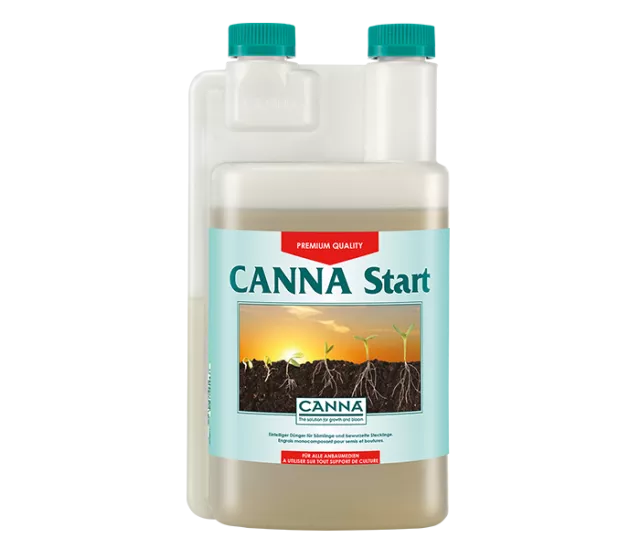 - Sie brauchen nur eine Flasche. CANNA Start ist eine kompletter Ein-Komponenten-Nährstoff, was bedeutet, dass alle benötigten Elemente in einer Flasche vorhanden sind (keine A-und B-Versionen erforderlich).