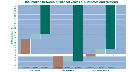 La terra non è un substrato inerte perché contiene sostanze nutritive che, se presenti anche nella soluzione nutritiva potrebbero portare ad un eccesso di alcuni elementi. Con il cocco succede invece l’opposto esso assorbe determinati elementi dalla soluzione nutritiva.