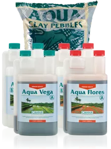 CANNA AQUA consente al coltivatore di somministrare esattamente la giusta quantità di sostanze nutritive durante la fase di crescita e fioritura di piante dalla crescita rapida. Altri prodotti CANNA come RHIZOTONIC (per lo sviluppo delle radici), CANNAZYM (enzimi che garantiscono un substrato impeccabile) e PK 13/14 (per la stimolazione della fioritura) danno maggiore supporto durante le diverse fasi di sviluppo della pianta. La combinazione di questi prodotti CANNA consente alla pianta una crescita e fioritura ottimali e assicurare un’alta resa.